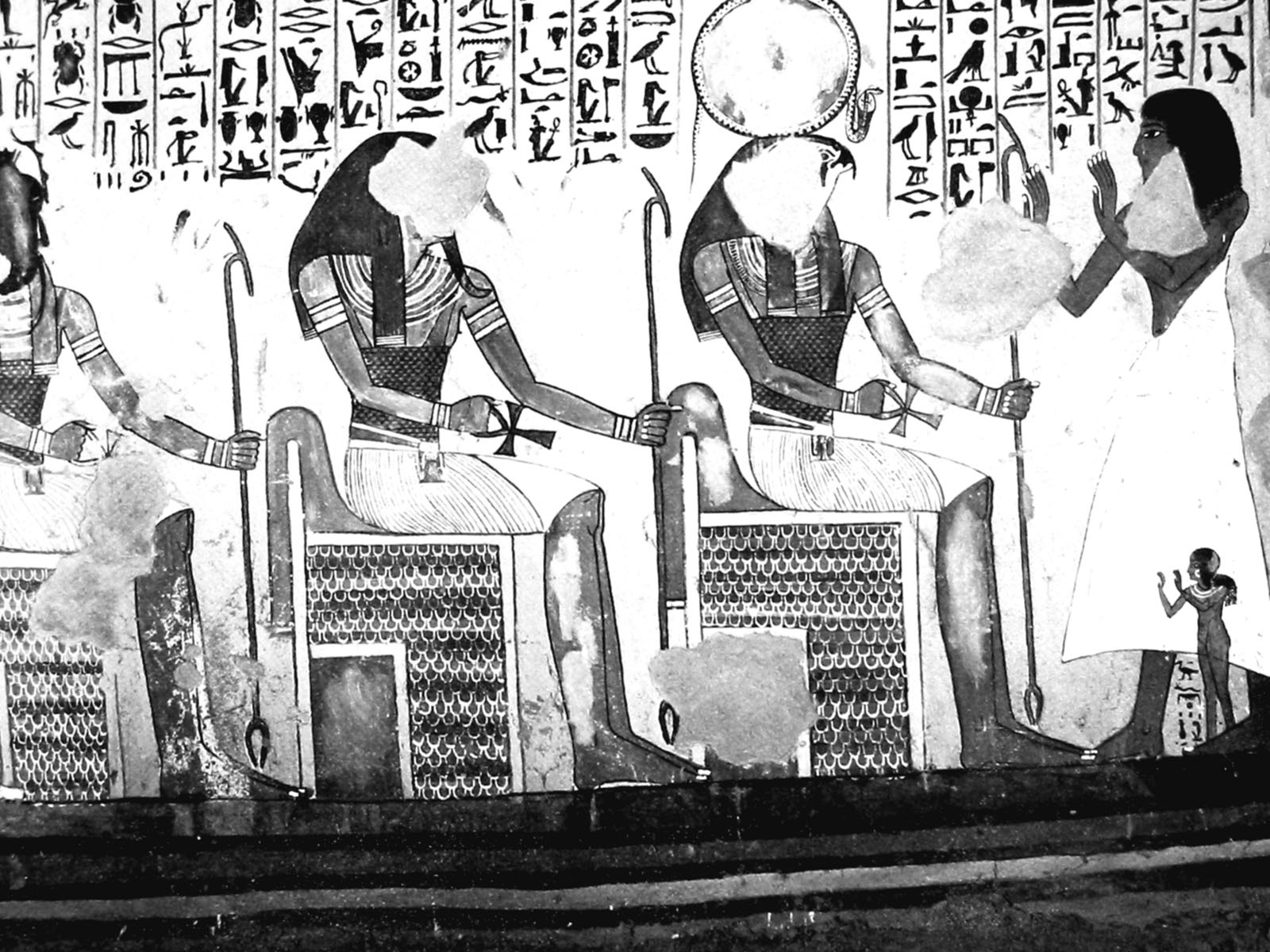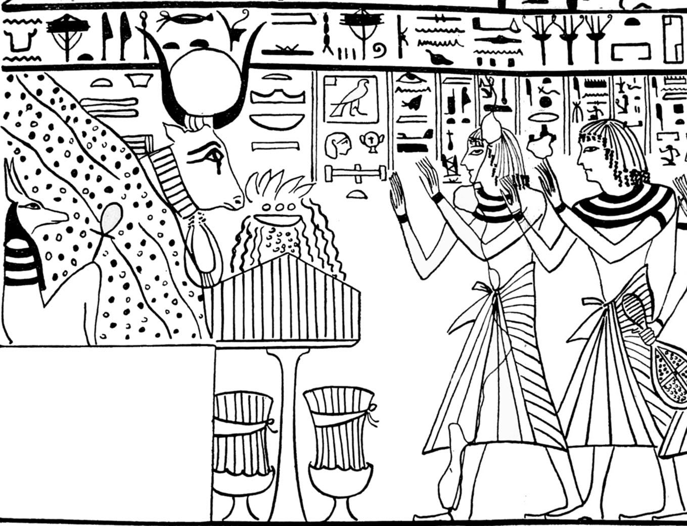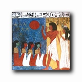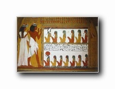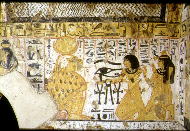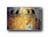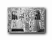 tt001_07_4874: TT001 Sennedjem – parede 07. Morto e esposa adoram os deuses do submundo. SHEDID, Abdel Ghaffar. Das Grab des Sennedjem: ein Kunstlergrab de 19. Dynastie in Deir el Medineh. Mainz am Rhein: Verlag Philipp von Zabern, 1994. (cena em cor) |