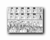 tt006_09c_0349: TT006 Neferhotepe & Nebnefer – paredes 9 registro III Parede leste, registro inferior - Continuação da parede 10 (parede norte pl. 12) Três casais dirigindo-se à esquerda (observar a variedade de trajes masculinos). WILD, Henri. La tombe de Nefer hotep (I) et Neb Nefer à Deir el-Médîna (n. 6) et autres document les concernant II. Le Caire: Institut Français d'Archéologie Orientale, 1979 (Mémoires 103/2) [PL 15]. |