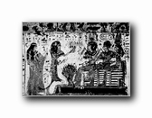 tt219_08_4363: TT219 Nebenma'et – parede 8 Morto e esposa tocando flauta oferecem buque num incens&ário à Osires, Amenófis I, Hathor (?) e 'Ahmés Nefertari em frente da montanha, e abaixo morto com filha e esposa jogando senet e cena com deusa-&árvore com bas e babuíno adorando. MAYSTRE, Charles. Tombe de Deir el-Médineh. La Tombe de Nebnmât (219). Le Caire: Imprimerie de L'Institut Français d'Archeologie Orientale, 1936. Mémoire Publiés par les membres de L'IFAO du Caire, Sous la direction de M. Pierre Jouguet. Tome LXXI. |