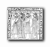 tt006_15_0357b: TT006 Neferhotepe & Nebnefer – parede 15 norte – Oferenda à Khnum, Satis, Anoukis et Haoéris feita por Nebnefer e sua esposa Iy que é acompanhada de uma outra mulher, seguidos de sua família. WILD, Henri. La tombe de Nefer hotep (I) et Neb Nefer à Deir el-Médîna (n. 6) et autres document les concernant II. Le Caire: Institut Français d'Archéologie Orientale, 1979 (Mémoires 103/2) [PL 22]. (mesma imagem, sem edição) |