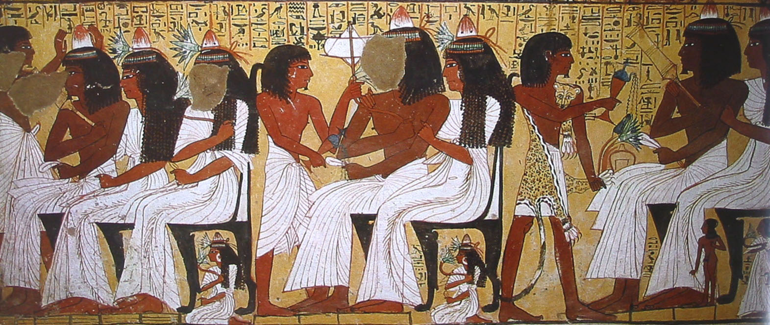 tt006_10b_0346: TT006 Neferhotepe & Nebnefer – parede 10 Norte, registro inferior: Nebnefer, sua esposa e a mãe de sua esposa, Iset participam de um banquete oferecido por v&ários casais (apenas um aparece nessa parede, os outros ocupam o registro inferior da parede leste) - detalhe do trio. WILD, Henri. La tombe de Nefer hotep (I) et Neb Nefer à Deir el-Médîna (n. 6) et autres document les concernant II. Le Caire: Institut Français d'Archéologie Orientale, 1979 (Mémoires 103/2) [PL 12] |