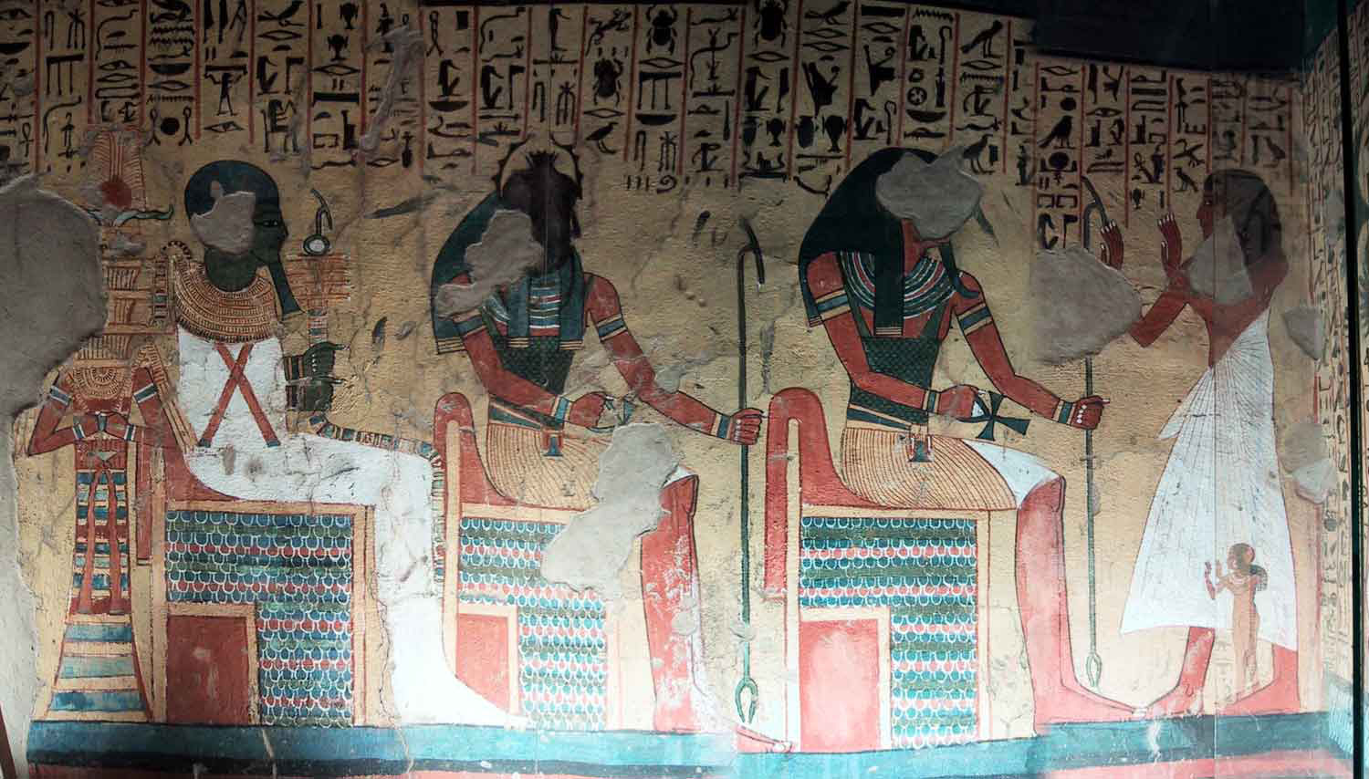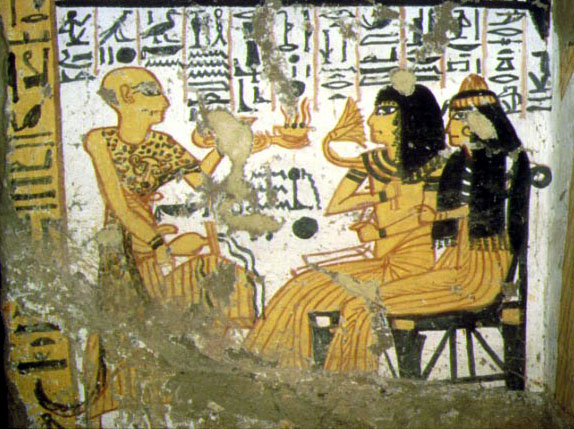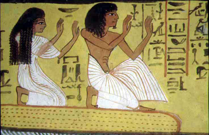 tt001_09_5772: TT001 Sennedjem – parede 09. Casal adora deuses. http://www.osirisnet.net/tombes/artisans/sened/photo/sen21.jpg. |