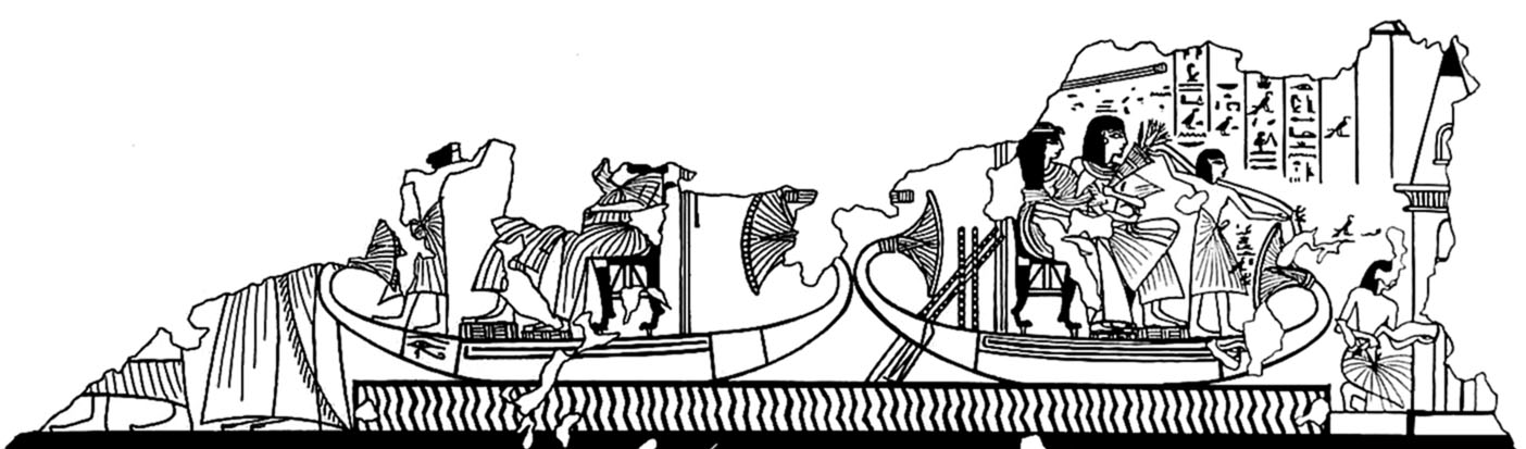 tt335_15_3277: TT335 Nekhtamun – parede 15 Dois registros: I. Cena da Deusa-&árvore com morto e esposa bebendo de uma piscina abaixo. II. Peregrinação à Abidos. BRUYÈRE, M. Bernard. "Rapport sur les fouilles de Deir el Médineh (1924-1925)" IN: IFAO, Fouilles de L'Institut Français d'Archéologie Orientale du Caire Année 1924-1925, tome 3ème, pt2. Le Caire: Imprimerie de L'Institut Français Orientale, 1926. [P&ág. 136 Fig. 92]. |