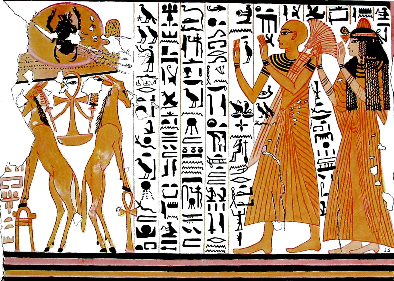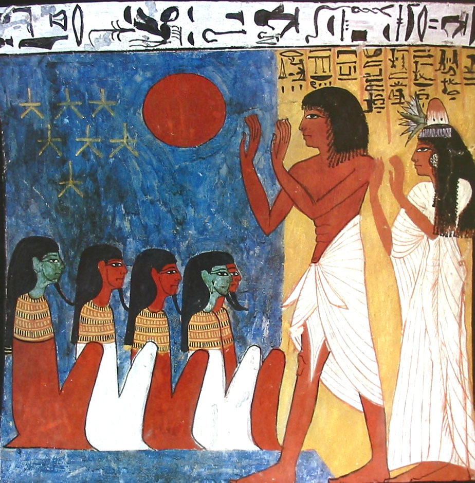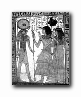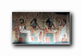 tt001_07_4874: TT001 Sennedjem – parede 07. Morto e esposa adoram os deuses do submundo. SHEDID, Abdel Ghaffar. Das Grab des Sennedjem: ein Kunstlergrab de 19. Dynastie in Deir el Medineh. Mainz am Rhein: Verlag Philipp von Zabern, 1994. (cena em cor) |