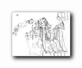 tt006_09c_0349: TT006 Neferhotepe & Nebnefer – paredes 9 registro III Parede leste, registro inferior - Continuação da parede 10 (parede norte pl. 12) Três casais dirigindo-se à esquerda (observar a variedade de trajes masculinos). WILD, Henri. La tombe de Nefer hotep (I) et Neb Nefer à Deir el-Médîna (n. 6) et autres document les concernant II. Le Caire: Institut Français d'Archéologie Orientale, 1979 (Mémoires 103/2) [PL 15]. |