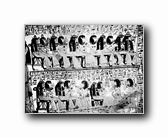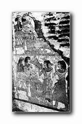 tt360_07_1673: TT360 Kaha (Qaha) – parede 7 Peregrinação à Abidos e Rito da Perna (foreleg-rite) na tumba-pirâmide. BRUYÈRE, M. Bernard. "Rapport sur les fouilles de Deir el Médineh (1930)" IN: IFAO, Fouilles de L'Institut Français d'Archéologie Orientale du Caire Année 1930, tome 8ème, pt3. Le Caire: Imprimerie de L'Institut Français Orientale, 1933. [PL XXVII Fig. 2]. |