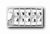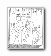 tt218_01c_0433: TT218 Amennakht – parede 1, registro III Parte de Procissão Funer&ária: familiares femininas como sacerdotisas, lamentadoras, e grupo de Servos no Lugar da Verdade. BRUYÈRE, M. Bernard. "Rapport sur les fouilles de Deir el Médineh (1927)" IN: IFAO, Fouilles de L'Institut Français d'Archéologie Orientale du Caire Année 1927, tome 5ème, pt2. Le Caire: Imprimerie de L'Institut Français Orientale, 1928. [P&ág. 67 Fig. 47]. |