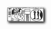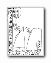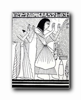 tt001_06_4831: TT001 Sennedjem – parede 06 – Filho Bunakhef fazendo libação diante do morto e família (esposa e filhos pequenos).(detalhe) SHEDID, Abdel Ghaffar. Das Grab des Sennedjem: ein Kunstlergrab de 19. Dynastie in Deir el Medineh. Mainz am Rhein: Verlag Philipp von Zabern, 1994. |