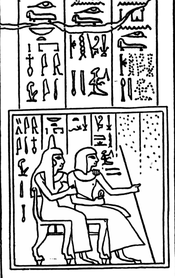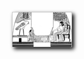 tt001_05X_4866: TT001 Sennedjem – parede 05 Face Interior – registro I. Falecido e esposa jogando Senet. SHEDID, Abdel Ghaffar. Das Grab des Sennedjem: ein Kunstlergrab de 19. Dynastie in Deir el Medineh. Mainz am Rhein: Verlag Philipp von Zabern, 1994. |