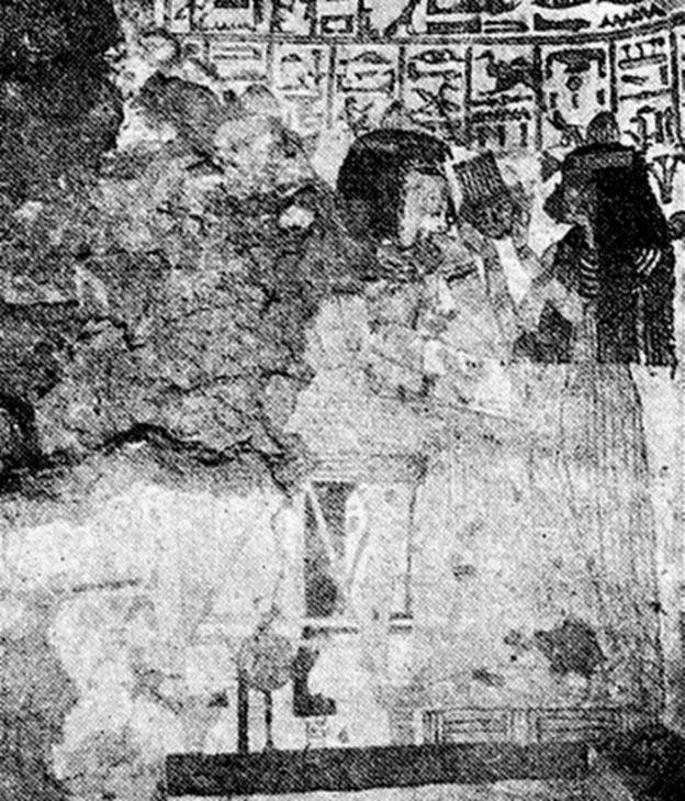 tt335_08-13_3262: TT335 Nekhtamun – paredes 8 e 13 (13) Irmão Neferronpet e esposa (TT336), (8) Irmão Ipuy e esposa (TT217) diante de vela do Ano Novo. BRUYÈRE, M. Bernard. "Rapport sur les fouilles de Deir el Médineh (1924-1925)" IN: IFAO, Fouilles de L'Institut Français d'Archéologie Orientale du Caire Année 1924-1925, tome 3ème, pt2. Le Caire: Imprimerie de L'Institut Français Orientale, 1926. [P&ág. 122 Fig. 84]. |
