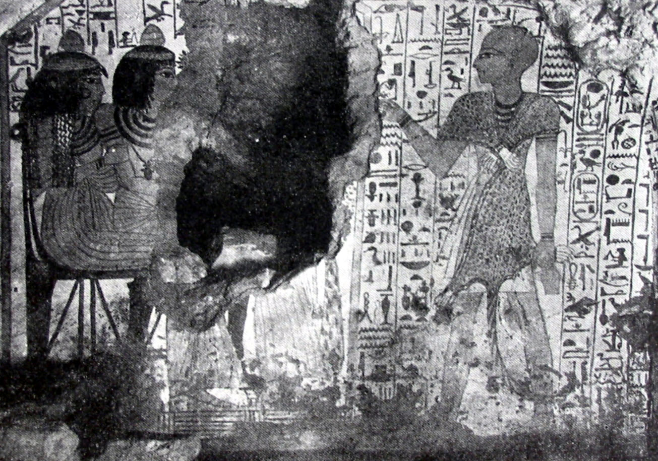 tt335_10_3266: TT335 Nekhtamun – parede 10 Esposa diante seus pais, Pashedu e Makhay (TT292). BRUYÈRE, M. Bernard. "Rapport sur les fouilles de Deir el Médineh (1924-1925)" IN: IFAO, Fouilles de L'Institut Français d'Archéologie Orientale du Caire Année 1924-1925, tome 3ème, pt2. Le Caire: Imprimerie de L'Institut Français Orientale, 1926. [P&ág. 125 Fig. 86]. |